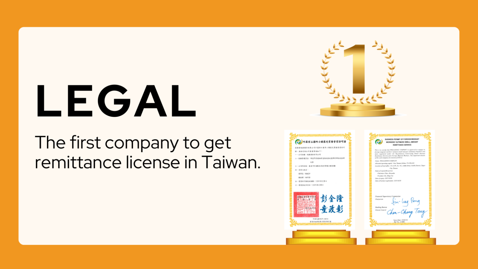- Obtained the first business license for migrant worker remittance business issued by the Financial Supervisory Commission in 2021, and renewed the license in 2024.